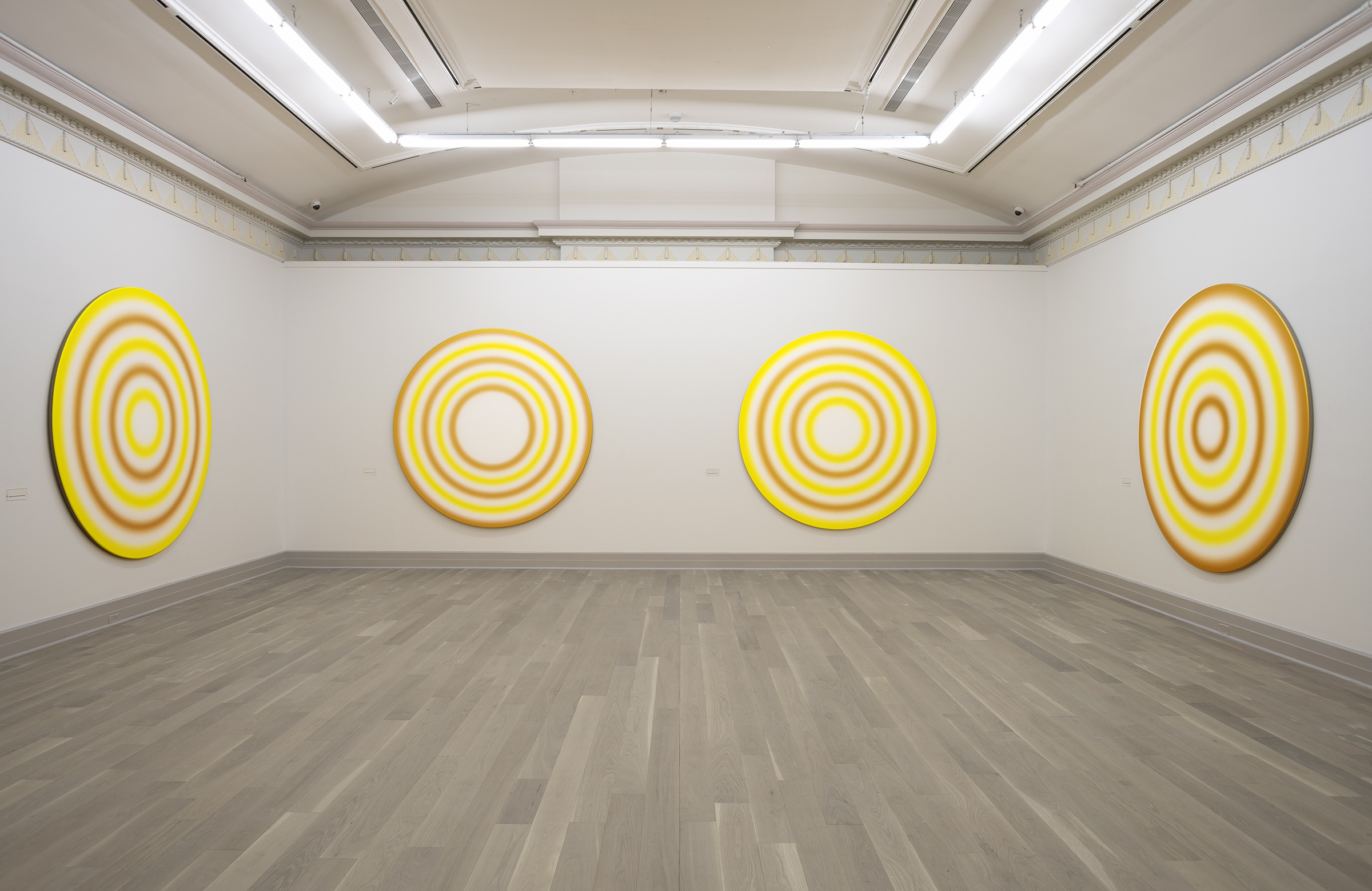 In a new series of eight “sun paintings,” Rondinone references the radiance and universal symbolism of the sun. He has incorporated this imagery in his work since 1991, and uses canvas spray-painted with soft concentric yellow rings as a representation of the sun and the impossibility of seeing its form with the naked eye. These eight paintings will be installed in Guild Hall’s Woodhouse Gallery.