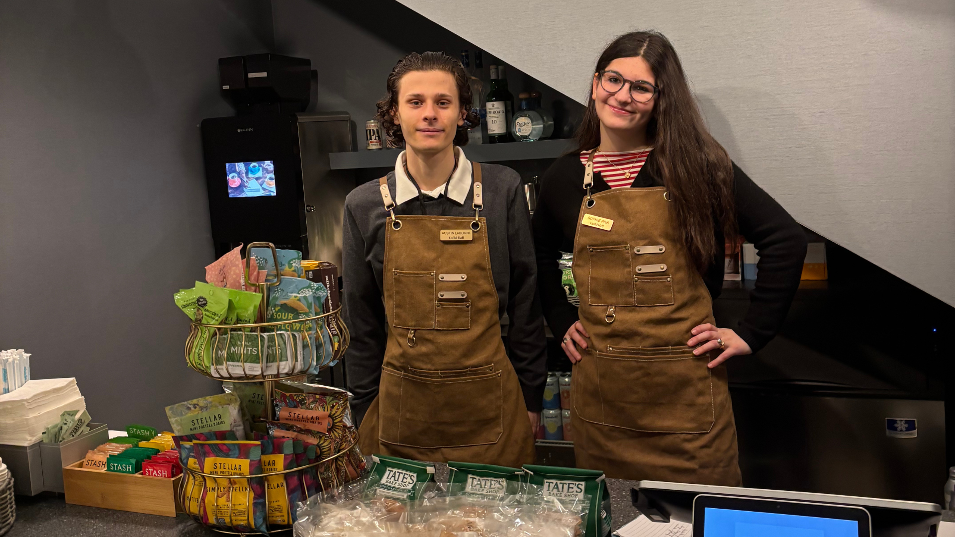 Louise & Howie’s Coffee Bar at Guild Hall is proud to feature local brands, including Sylvester & Co. Dreamy Coffee, Wölffer Estate Vineyards wines, Kidd Squid beer, Talkhouse canned cocktails, Our Water, North Fork Potato Chips, Sugar Sweet cookies, and more.